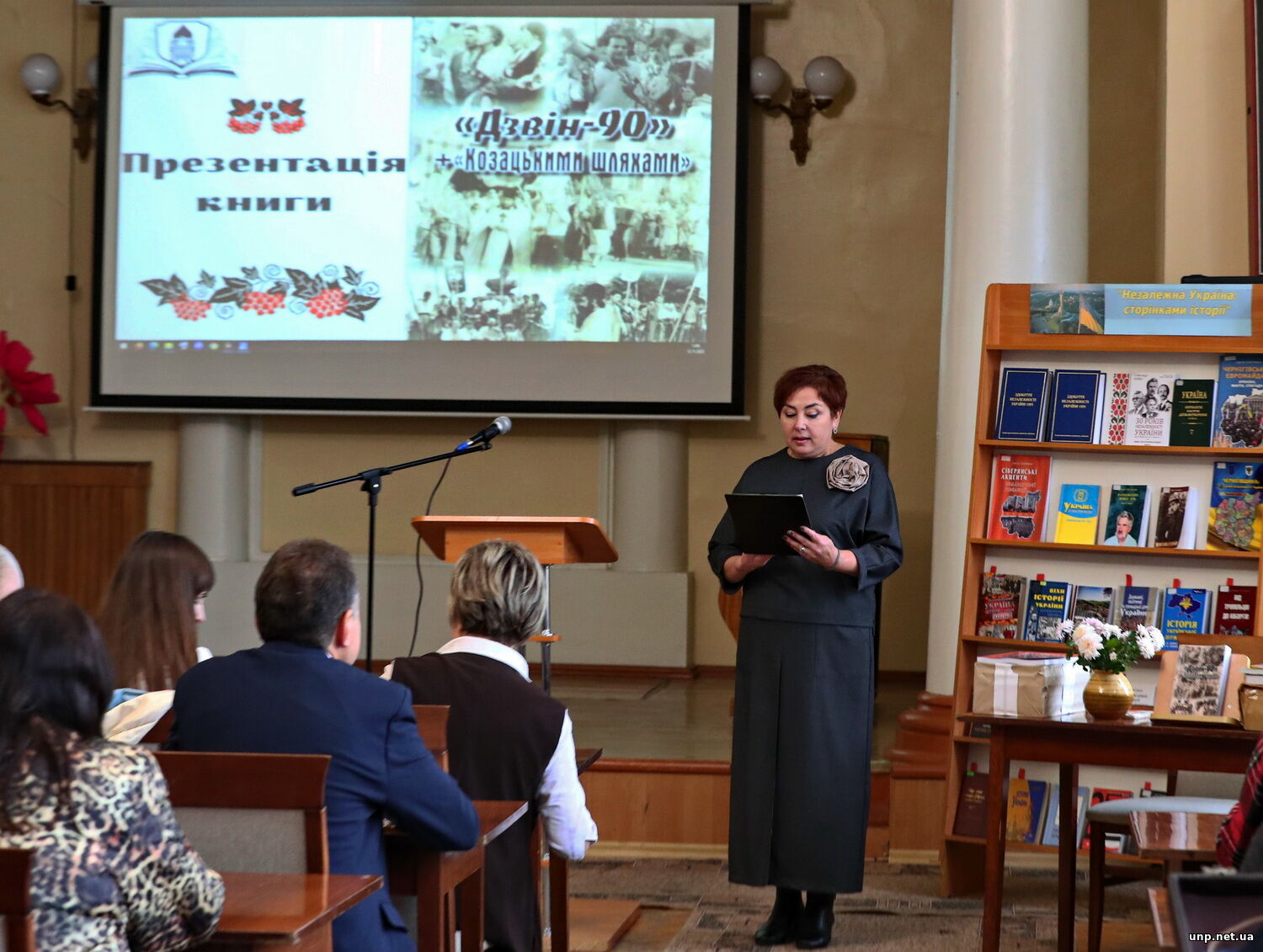 Ведуча заходу – в. о. завідувачки відділу документів із гуманітарних наук Інна Янголь – у представленні видання зупинилася на тому, що книга "Дзвін-90" + "Козацькими шляхами" – унікальна, бо поєднала в собі спогади, документи, світлини й публіцистику, присвячені культурологічним і духовним мандрівкам, які започаткували відомі подвижники українського відродження 1990-х років. На її сторінках – спогади учасників, публікації у пресі, поетичні рядки, світлини, більшість із яких публікуються вперше, документи, що дають змогу відчути атмосферу тих років. Це жива історія людей, які вірили у силу українського слова, культури, духу та свободи.