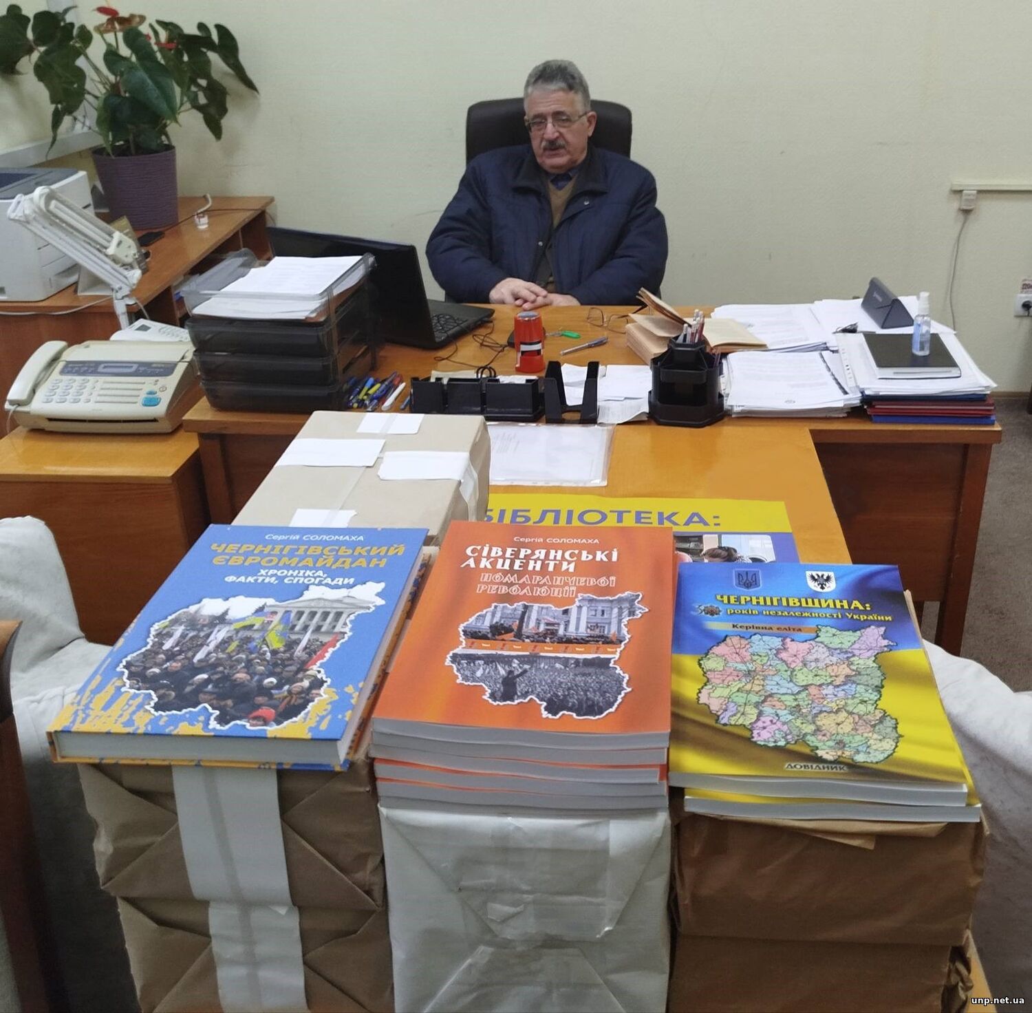 Василь Чепурний і Сергій Соломаха від Чернігівської організації "Просвіта" подарували бібліотеці 45 примірників нової книги "Дзвін-90" + "Козацькими шляхами", 26 примірників книги "Чернігівський Євромайдан", 26 примірників книги Сергія Соломахи "Сіверянські акценти Помаранчевої революції" та 22 примірники довідника "Чернігівщина: 30 років незалежності України", за що висловлюємо щиру вдячність.